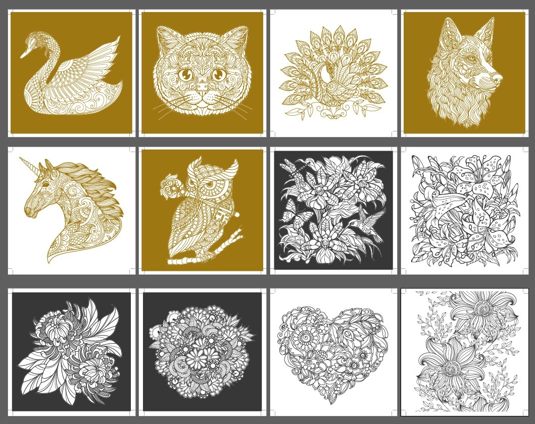 Ez az elegáns kifestőkészlet gyerekeknek és felnőtteknek egyaránt örömet okoz. A arany és ezüst fólia fémes fénye luxus megjelenést kölcsönöz minden motívumnak, és kiemeli a színezett alkotásokat. Az állati és növényi minták kreativitást, relaxációt és finommotorikát fejlesztenek.
