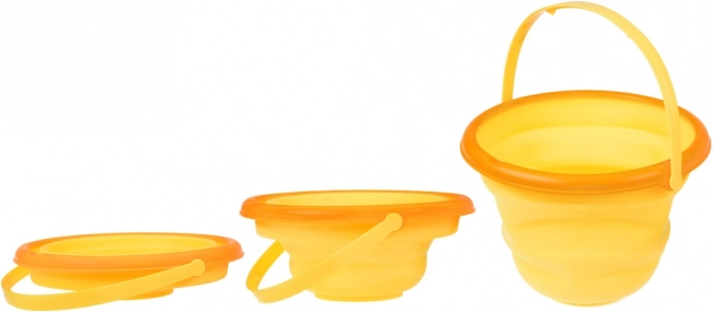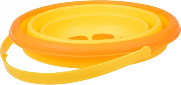 Vége a nehézkes vödröknek az autóban. Ez az összecsukható, puha szilikonból és műanyagból készült vödör egy pillanat alatt laposra hajtható, és ugyanilyen gyorsan újra kinyitható. A kényelmes fogantyúnak köszönhetően könnyen hordozható, élénk citromsárga színei pedig elbűvölik a gyerekeket.