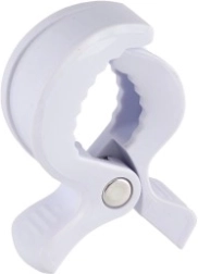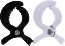 A szettben egy fekete és egy fehér klipsz található – könnyen harmonizál a babakocsival, és ott használható, ahol szükség van rá.