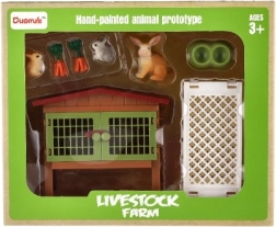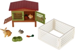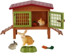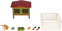 A készlet részét képezik a nyuszik, etető és kerítés, amelyek valósághű játékélményt nyújtanak.