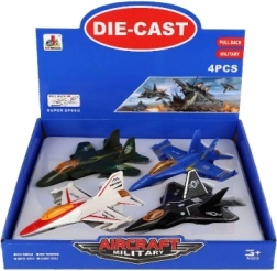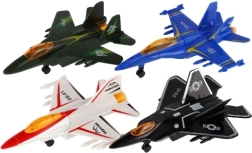 Fedezze fel a végtelen légi kalandok világát a fém és műanyag vadászgépekkel, amelyek minden kis repülőrajongót elbűvölnek. Ez a készlet négy különböző színű vadászgépet tartalmaz, mindegyik 16 cm hosszú.
