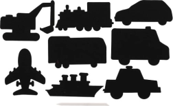 A szett 8 különböző kapargatós designt tartalmaz, beleértve a repülőt, autót, vonatot és másokat.