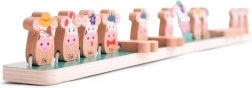 Logikai, kissé detektíves játék 2 játékosnak, 6 éves kortól. Minden játékos választ egy kártyát egy tehén képével, és a saját tartójára helyezi úgy, hogy a másik játékos ne lássa. Ezután a játékosok felváltva tesznek fel kérdéseket, hogy kiderítsék, melyik bocit választotta a másik. Van a tehenednek kalapja? Vagy masnija? Ha nincs, fordítsd őket le. Az utolsó megmaradt tehén a megfejtés. Az nyer, aki először találja ki helyesen az ellenfél tehenét. A játék fejleszti a megfigyelőkészséget és a logikus gondolkodást. A csomag tartalma: 2 tehénfigurás tartó (56 × 4 × 4,5 cm) | 16 kártya tehénképekkel. A játék fejleszti: megoldásközpontú logikus gondolkodás, előre gondolkodás.