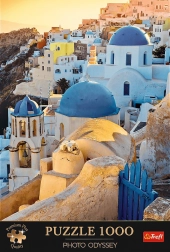 Fedezze fel Santorini szépségét a TREFL Premium Plus Quality sorozat puzzle-jeivel, amelyek részletes képeket és minőségi anyagokat kínálnak. Tökéletesen illeszkedő darabokkal minden pillanatát élvezheti a kirakásnak:
