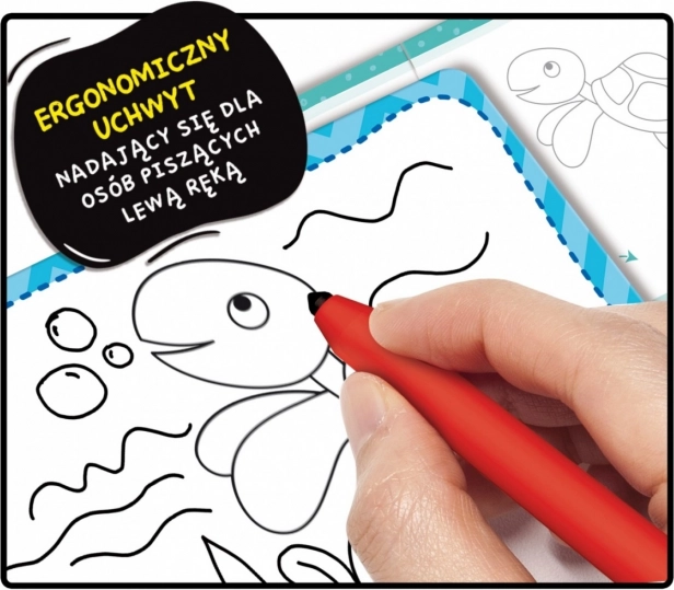 Fedezd fel a szórakoztató tanulást ezzel az oktató rajzkészlettel. Ergonomikus, ujjvájatokkal ellátott tollat tartalmaz, amely alkalmas gyermekek számára, és támogatja a helyes ceruzafogást, a finommotorika fejlesztését és a rajzalapok elsajátítását.