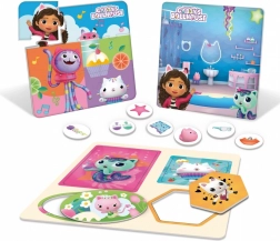 A Gabi varázslatos háza világából ismert tematikus táblák és illusztrációk motiválják a gyerekeket a számok, tárgyak és az egyszerű szabályok felfedezésére játék közben.