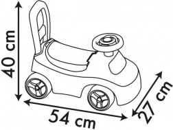 A praktikus tárolórekesz a felnyitható ülés alatt elfér benne az apró játékok és a kis utazó kincsei. A kormány inspirálja a játékot, a halk kerekek beltérben is ideálisak. A könnyű műanyag konstrukció könnyen hordozható és bírja a mindennapos használatot.