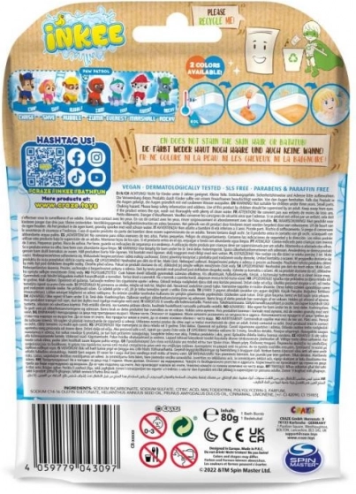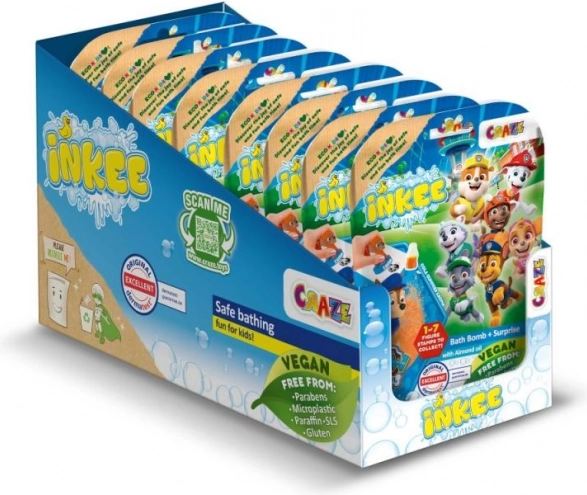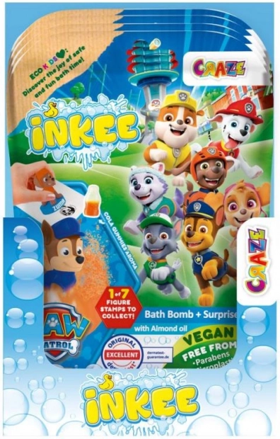 Az Inkee pezsgő fürdőbomba Mancs őrjárat licenccel színes látványt és édes Cola Gummies illatot varázsol a kádba. Belül egy meglepetés rejlik, amelynek a gyerekek örülni fognak – egy pecsét valamelyik kedvelt hőssel. Minden golyó 80 g súlyú és környezetbarát csomagolásban kapható.