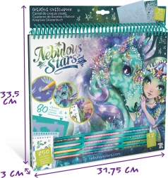 Fedezd fel a NEBULOUS STARS varázslatos világát ezzel a kreatív, zöld sketchbookkal. A készlet mindent tartalmaz az alkotáshoz – a 250 matricától és a 12 színes ceruzától kezdve egészen a 80 sablonig és a 35 képes lapig. A 12 rajztechnika útmutatóinak köszönhetően a gyerekek fejlesztik fantáziájukat, finommotorikájukat és színérzéküket. Ideális ajándék 7 éves kortól kis alkotóknak.