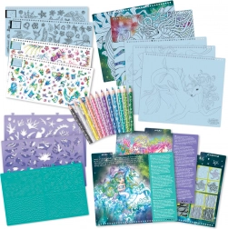 A csomagban sokféle rajzeszköz és kiegészítő vár, amelyekkel a gyerekek átrajzolhatnak, színezhetnek, rajzolhatnak és ragaszthatnak. Az érthető, lépésről lépésre haladó útmutatók segítségével gyorsan elsajátítják az új technikákat, és gyönyörű, az állatok varázslatos világából inspirált képeket készítenek.