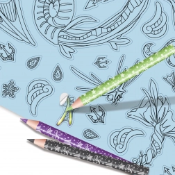 - 12 színes ceruza és 80 sablon a végtelen variációkhoz