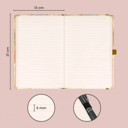 Belül 172 oldal minőségi, sárga papír várja, ideális a mindennapi íráshoz. A jegyzetfüzet kiváló naplónak, munkajegyzetekhez, tervezéshez és kreatív ötletekhez. A belső zseb elnyeli az apróságokat, névjegyeket vagy matricákat.