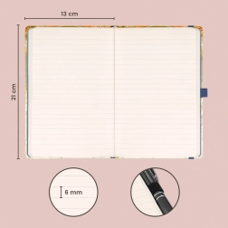 A sárga papíron lévő vonalas lapok kényelmes olvasást és írást biztosítanak szemfáradás nélkül. A 172 oldal elegendő helyet kínál gondolatoknak, feladatoknak és kreatív ötleteknek – a személyes naplótól a munkahelyi meetingekig.