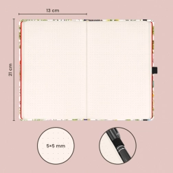 A pontozott vonalazásnak köszönhetően kiváló íráshoz, skicceléshez, bullet journalhoz és listák készítéséhez. A kemény borító védi a tartalmat, a kiegészítők – gumi, zseb és tollhurok – pedig mindent egyben tartanak.