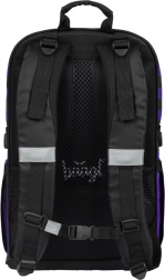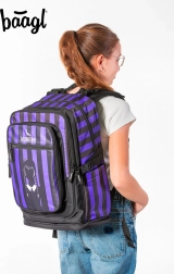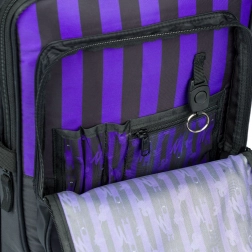 A CUBIC WEDNESDAY iskolai hátizsák a fekete–lila csíkozású, karakteres dizájnt átgondolt ergonómiával ötvözi a mindennapi kényelemért. A teljesen állítható váll-, mell- és oldalsó kompressziós pántoknak köszönhetően a hátizsák könnyen a testalkathoz igazítható, míg a légáteresztő hátkialakítás kényelmes viseletet biztosít még teljes terhelésnél is.