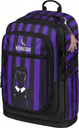 Stílusos CUBIC iskolai hátizsák WEDNESDAY motívummal, ergonomikusan formázott háttal, alacsony, 1,2 kg-os tömeggel és 29 l űrtartalommal. Három rekesz rendszerezővel és 15"-os laptopnak szánt zsebbel, fényvisszaverő elemekkel a biztonságért, valamint tartós, vízálló anyagból – ideális választás iskolába és szabadidőre is.