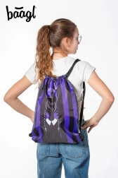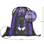 Stílusos hátizsák/tornazsák Wednesday motívummal, ideális cipőre, tornaórára és apróságokra. Erős, mosható anyagot, könnyű zsinóros zárást és kényelmes hordást a háton kínál.