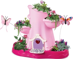 - Teljes készlet: házikó, virágcserép, föld, magok, kerti szerszámok, locsolókanna, 2× pillangó és kerti ülőke.