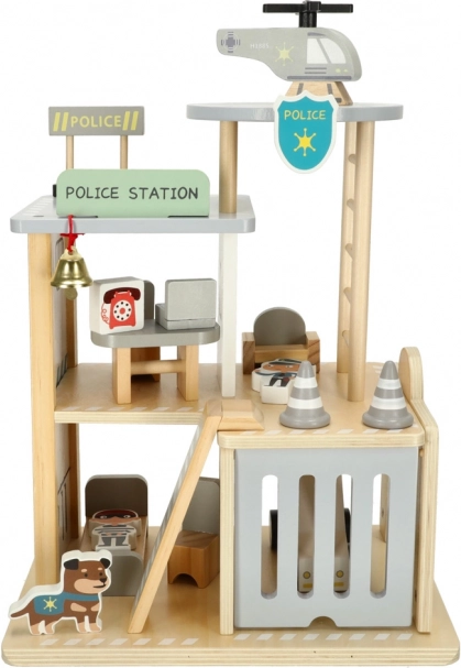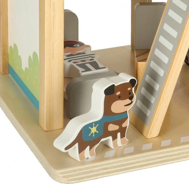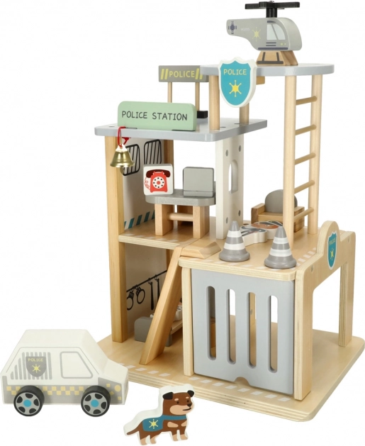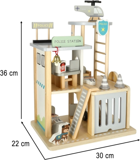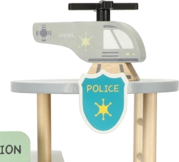 Ez az átgondolt fa készlet a gyerekeket a mentőakciók világába repíti. A földszinten garázs a rendőrautónak és cella a tolvajnak, középen parancsnoki iroda, a tetőn pedig heliport a gyors bevetésekhez. A gondosan megmunkált fa biztonságos használatot és hosszú élettartamot biztosít.