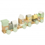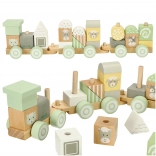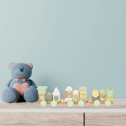 A pasztellszínű LULILO fa vonat ideális játék a kis építőknek. A gyerekek szabadon kombinálhatják a blokkokat, újra és újra új szerelvényeket alkothatnak, vagy a kockákat önállóan is használhatják. Minden elem simára csiszolt, nem mérgező festékkel, lágy árnyalatokban színezve, kedves állatmintákkal kiegészítve.