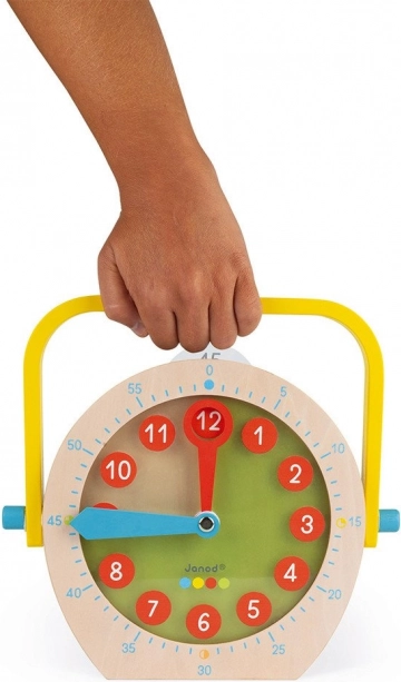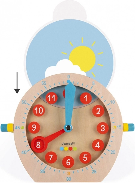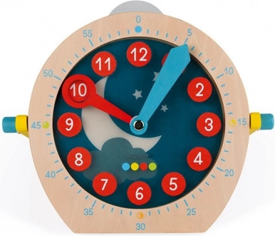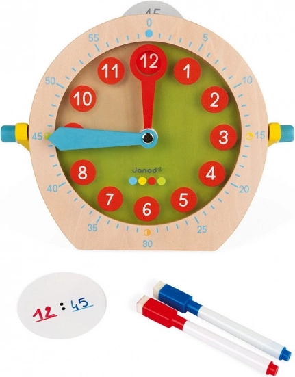 A JANOD fa oktató óra segít a gyerekeknek gyorsan és örömmel megérteni, mennyi az idő. A nagy számlap jól olvasható számokkal és színes mutatókkal lépésről lépésre vezeti őket az idő megértéséhez, akár egész órákat, félórákat vagy perceket gyakorolnak.