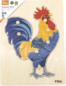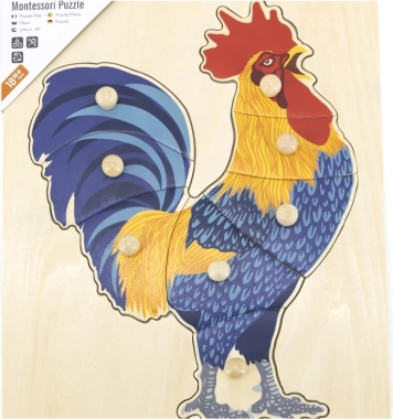 A gyerekek a kakast kép és forma alapján rakják ki. Szórakoztató módon gyakorolják a térbeli észlelést, a türelmet és a kéz–szem koordinációt.