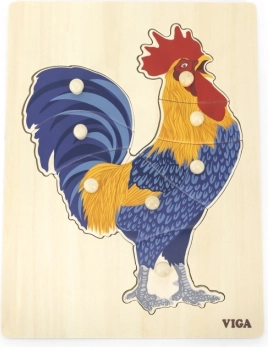 Ez a kakasos fa kirakó az első logikai játékokra és érzékszervi felfedezésre készült. A gyerekek nemcsak az illusztráció, hanem az egyes elemek formája szerint is kirakják a képet, ami erősíti a térbeli észlelést és a koncentrációt. A gombos fogantyúk minden elemen megkönnyítik a megfogást még a legkisebb ujjaknak is.