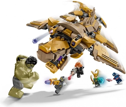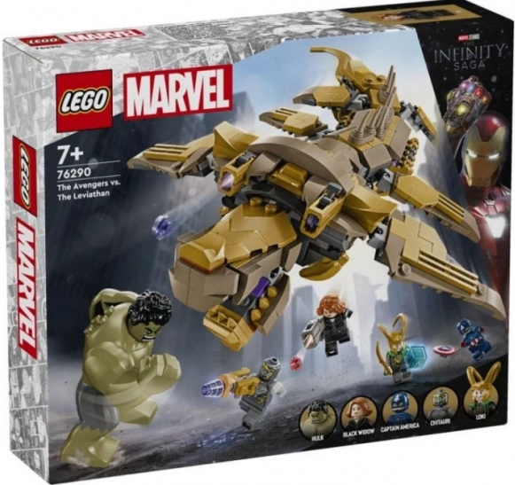 A LEGO Marvel Bosszúállók készlet négy minifigurát tartalmaz – Amerika Kapitányt pajzzsal, Fekete Özvegyet blasterrel, Lokit köpennyel és sisakkal, valamint egy Chitauri harcost lézerfegyverrel – továbbá egy nagy Hulk figurát. A fő attrakció az összeépíthető Leviatán hat mozgatható uszonnyal, nyitható szájjal és könnyen elforgatható fejjel. Átlátszó állványokkal van felszerelve a valósághű játékjelenetekhez.