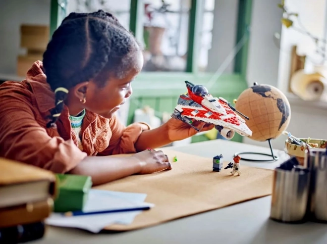 Építsen gondolkodót LEGO kockákból nyitható pilótafülkével és behúzható futóművel. A mellékelt kard tartók fokozzák az interaktív játékot.