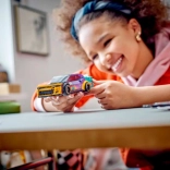 Biztonsági bukókeret, műszerfal, sebességváltó kar és tűzoltó készülék teremtenek valósághű környezetet a NASCAR sofőr minifigura számára.