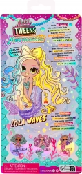 A L.O.L. Surprise! Tweens Mermaids kollekció Lola Waves babája fantáziadús szórakozást nyújt a gyerekeknek. Részletgazdagon kidolgozott tengeri farka pikkelyes textúrával és a színváltó funkció minden fürdésnél és játéknál örömet okoz. A csuklóknak köszönhetően a baba könnyen beállítható és pózolható végtelen történetekhez.