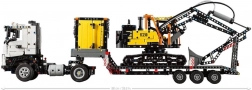 Fedezd fel a méretarányos, autentikus építőgépeket, amelyek minden műszaki rajongót lenyűgöznek. A VOLVO FMX teherautó nyitható ajtókkal és billenthető fülkével rendelkezik, amely alatt egy valósághű hathengeres motor mozgó dugattyúkkal található. A sík platós pótkocsi lehajtható felhajtórámpákkal segíti az EC230 kotrógép felrakodását.
