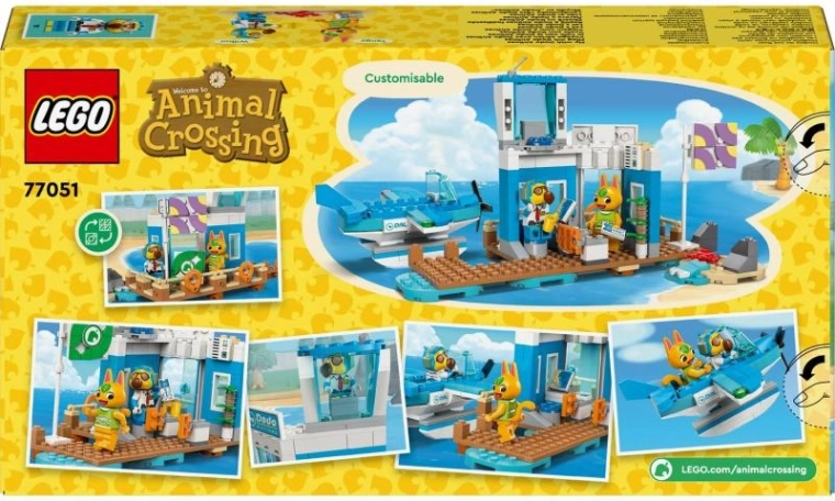 Vidd el a gyerekeket szigeti kalandra a LEGO Animal Crossing Dodo Airlines repülőtér (77051) készlettel! A doboz a játék kedvelt elemeit hozza el – kikötői móló, irányítótorony, homokos part és a legendás narancssárga kapu – illetve egy részletes hidroplánt nyitható pilótafülkével és működő légcsavarral. Két ikonikus minifigura, Wilbur pilóta és Tangy utas hív a végtelen játékra és saját történetek alkotására.