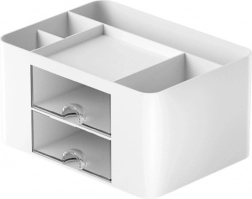Ez a fehér íróasztal szervező tökéletes megoldás az íróasztal rendben tartásához és esztétikájához. Magas minőségű műanyagból készült, ismert tartósságáról és szívósságáról. Átgondolt kialakításának és sokféle rekeszének köszönhetően optimálisan kihasználják a rendelkezésre álló teret.