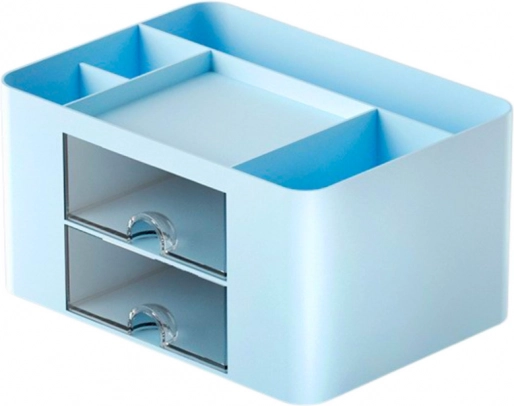 A kék rendező 5 rekeszt és 2 fiókot kínál különféle szervezési igényekhez.