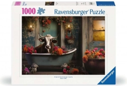 Élvezze a megnyugtató kirakást a 1000 darabos RAVENSBURGER puzzléval. A kádban ülő tehén humorát és báját a virágok között a csúcsminőségű nyomtatás és a precíz kivágás emeli ki. Minden darab egyedi formájú, és csak a megfelelő helyre illeszkedik.