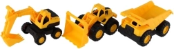 A kisautók könnyű, ugyanakkor tartós műanyagból készültek, így bírják a mindennapos játékot bent és kint is. Mindegyik darab valósághű formákkal és funkcionális elemekkel (rakodókanál, billenő plató) rendelkezik, amelyek segítik a gyerekeket a valódi építési munkák utánzásában.