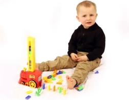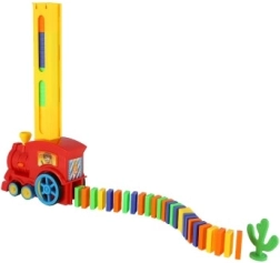 Szórakoztató domino vonat, amely menet közben magától egymás után akár 60 színes kockát rak sorba. Ütközéskor automatikus irányváltást kínál, a kémény elfordításával könnyen állítható az irány, és látványos fény- és hangeffektek gondoskodnak az élményről. Remek eszköz a gyerekek finommotorikájának, türelmének és kreativitásának fejlesztéséhez.