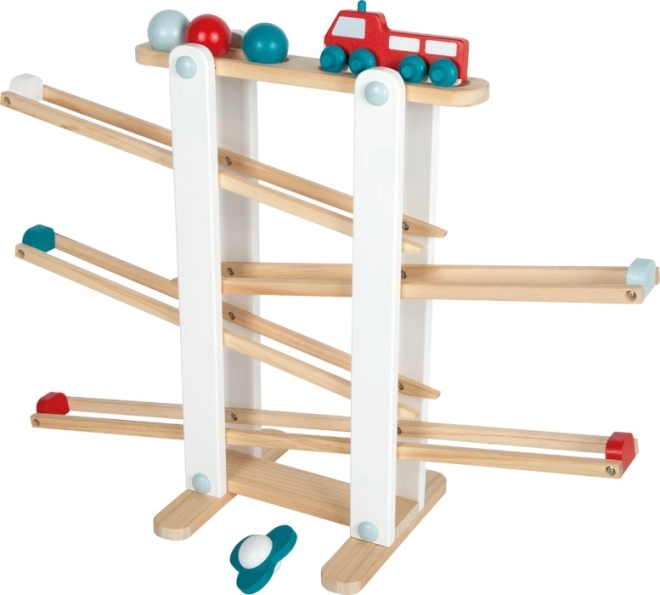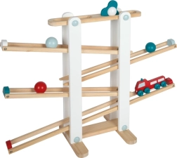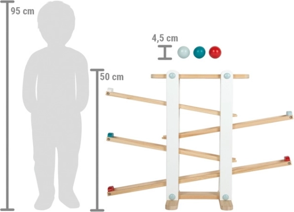 Ez a nagy, fa Small Foot golyópálya folyamatos meglepetést és örömöt nyújt a gyerekeknek, miközben a golyókat és a kisautót figyelik, ahogy szintről szintre gurulnak. A natúr fa és az élénk színek kombinációja modern és időtálló megjelenést ad, így tökéletesen illik bármelyik gyerekszobába. A tömör fából készült, stabil kivitel hosszú élettartamot és biztonságos játékot garantál.