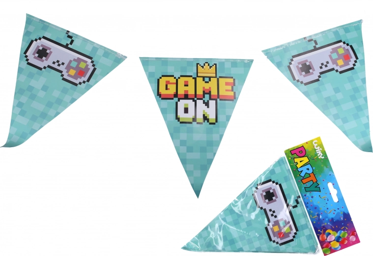 Adj játékos hangulatot a partidnak a dekoratív, JÁTÉK dizájnú zászlókkal. Ideális születésnapokra, tematikus bulikra, gyerekzsúrokra és játék estekre. Papír kivitelének köszönhetően könnyűek, egyszerűen felakaszthatók, és az esemény után környezetbarát módon ártalmatlaníthatók.