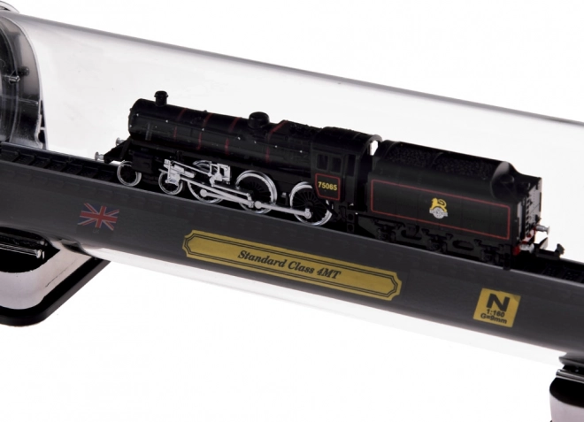 A STANDARD CLASS 4MT modell kiemelkedik a pontos részletábrázolással, kontrasztos festéssel és élethű sínre helyezéssel – kiállításra készen.
