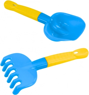 Az ergonomikus lapát és gereblye jól illik a gyerekkézbe. Négy forma (rák, tengeri csikó, csillag, teknős) ösztönzi a fantáziát.