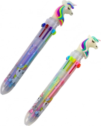 Ez a több színű golyóstoll cuki egyszarvú mintával ötvözi a játékos megjelenést és a praktikusságot. Egyetlen kattintással választhatsz a 10 különböző tintaszín közül, így az íráshoz, aláhúzáshoz és rajzoláshoz szükséges minden szín mindig kéznél van.