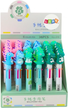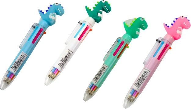 Szórakoztató és praktikus, dinoszaurusz mintás többszínű toll, amely 6 színt egyesít egyben. A automatikus váltásnak köszönhetően a kiválasztott gomb megnyomásával egyszerűen módosíthatja a színt. Ideális íráshoz és rajzoláshoz, remek választás gyerekeknek, akik imádni fogják a játékos designt és a kényelmes használatot.