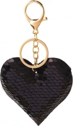 Elegáns szív alakú kulcstartó kétoldalas flitterekkel, amely azonnal felkelti a figyelmet a feketéből ezüstbe váltó színének köszönhetően.