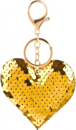 A szív alakú kulcstartó egy bájos és stílusos kiegészítő, melyet két színű flitterekkel terveztek. A kulcstartó felületén arany flitterek találhatók, amelyek csillogó megjelenést adnak. Ennek a kulcstartónak az egyedi funkciója, hogy a flitterek két színűek - kézzel végigsimítva átváltoznak, és felfedik az ezüst oldalt, ami kontrasztos hatást kelt és felhívja a figyelmet.