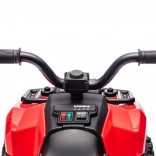 Elektromos gyermek quad GTS1155 az attraktív piros színben stabil haladást, tartós kerekeket és egyszerű kezelhetőséget kínál a kis motorosoknak. Remek választás kültéri szórakozáshoz élethű részletekkel, masszív felépítéssel és biztonságos kormányzással az intuitív kormány segítségével.