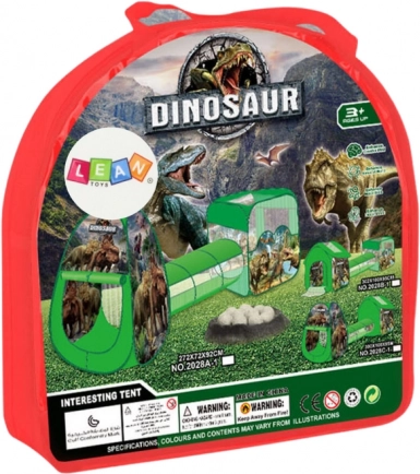 Szórakoztató 3 az 1-ben készlet a játékos fantáziához: tágas sátorház, hosszú alagút és kosaras száraz labdamedence vonzó dinoszaurusz motívummal. Könnyen összeszerelhető, tartós szintetikus anyagból készült, beltérre és kültérre egyaránt alkalmas, és CE és EN71 tanúsítással rendelkezik. Ideális 3 éves kortól.