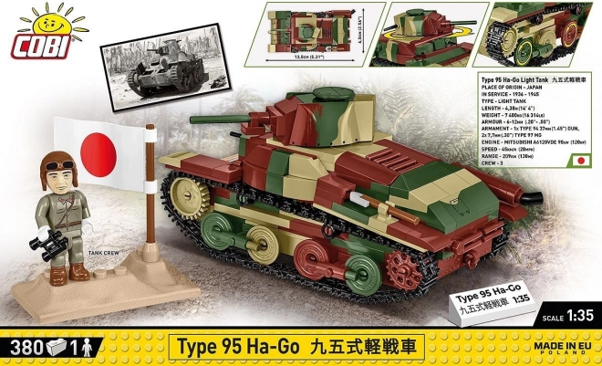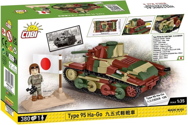 Fedezze fel az ikonikus japán könnyű harckocsit, a TYPE 95 HA-GO modellt a COBI Historical Collection gyűjtői kiadásából. Az 1:35 méretarányú modell 380 elemből áll, mozgatható kerekekkel, lánctalpakkal és toronnyal rendelkezik, minőségi nyomatokkal az elemekon és a figurán, továbbá tartalmaz egy japán harckocsizó figurát és egy kétnyelvű névtáblát. Az építőkészlet kompatibilis más márkákkal, az EU-ban készült és megfelel a biztonsági szabványoknak.