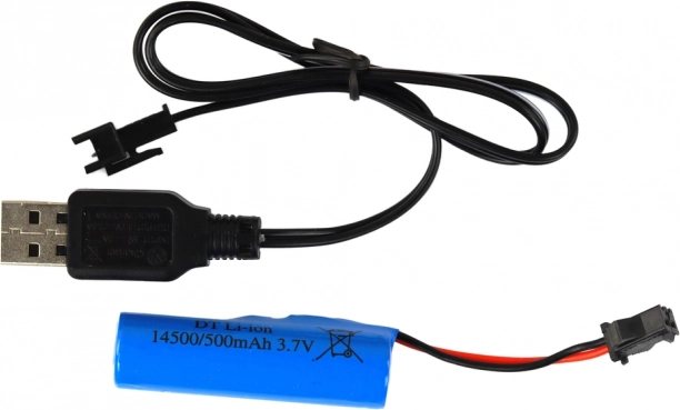 A 27 MHz-es távirányító teljes irányítást tesz lehetővé: előre/hátra haladást és balra/jobbra kanyarodást. A 3,7 V 500 mAh tölthető akkumulátor akár 30 perc menetidőt biztosít, a mellékelt USB töltővel a töltés körülbelül 2 órát vesz igénybe. A modell megfelel a CE és EN71 szabványoknak.